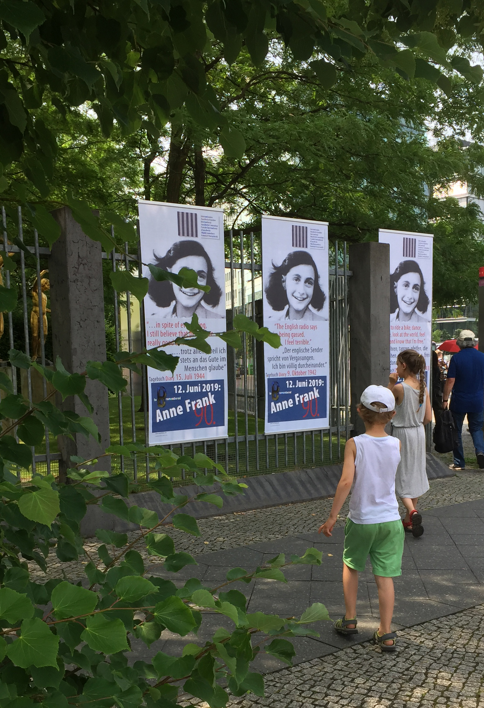 Commemorating the 90th birthday of Anne Frank today we launched a small reminder or exhibition on a fence opposite the Holocaust-Memorial in Berlin.